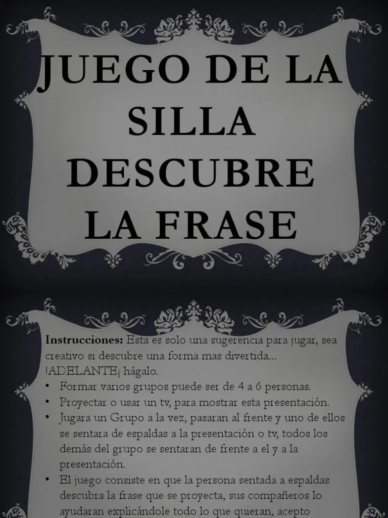 El Juego De La Silla : Como Jugar A Las Sillas Musicales 11 Pasos. En ese momento todos los participantes empiezan a dar vueltas alrededor de las sillas. El juego de las sillas es un juego infantil cuyo objetivo es bastante simple: Cuando ocurra esto, cada niño deberá .
